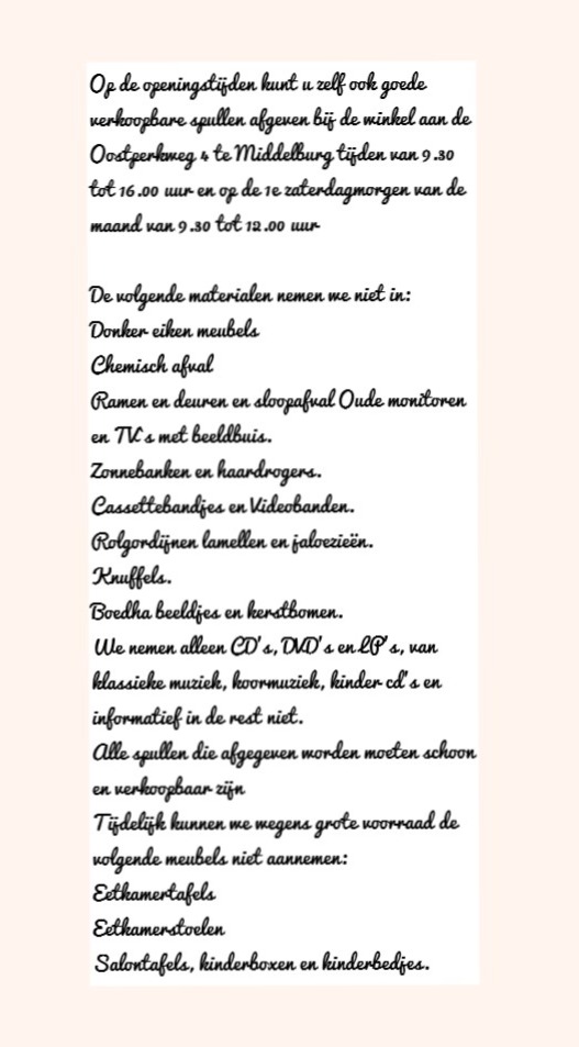 U kunt ook goederen afgeven aan ons magazijn Oostperkweg 4
